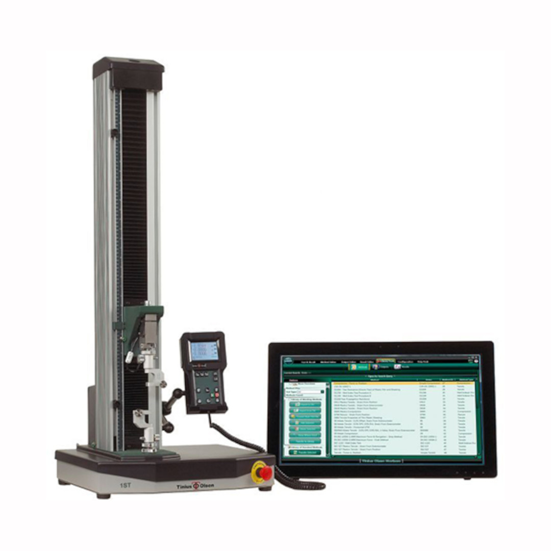 É possível realizar uma série completa de testes, incluindo procedimentos para resistência: à tração, ao cisalhamento, à compressão, à flexão, à perfuração e rotura, resistência ao rasgo, coeficientes de atrito, rigidez, temperatura de deflexão, determinação de carga, penetração de Vicat e resistência à torção. Todos os testes são projetados e implementados pela Tinius Olsen de acordo com os principais padrões de teste internacionais, incluindo ISO, ASTM, EN e outros padrões industriais.
